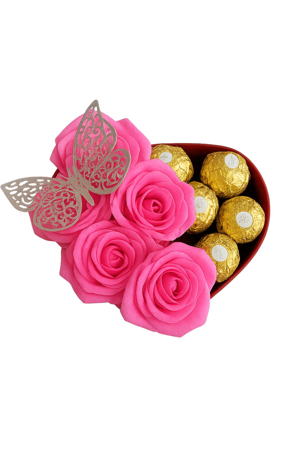 Ručno pravljeni pokloni za nju: satenske ruže u kutiji, korpici ili vazi, kombinovane sa čokoladicama i plišanim medvedićima. Dostava širom Srbije — savršen poklon za devojku, suprugu ili sestru.
